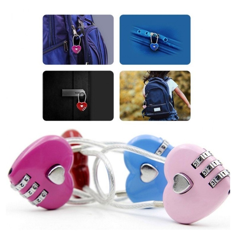 Heart-Shaped Wire Combination Mini Lock for Doors, Lockers & Cabinets Valuables Pink 2ea