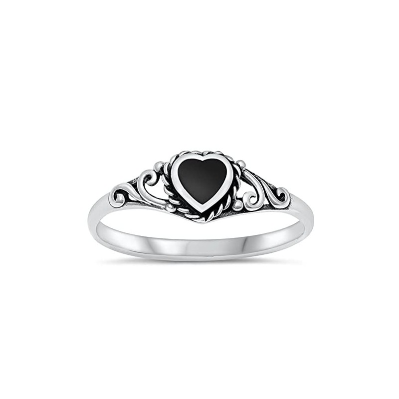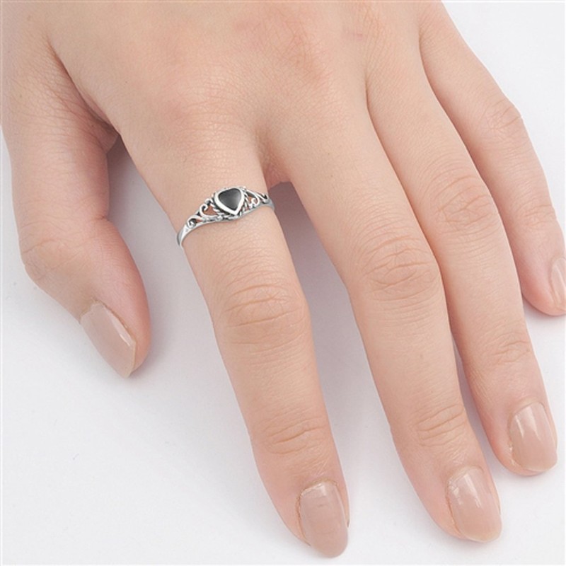 Heart Simulated Black Onyx Promise Ring New .925 Sterling Silver Band Size 8