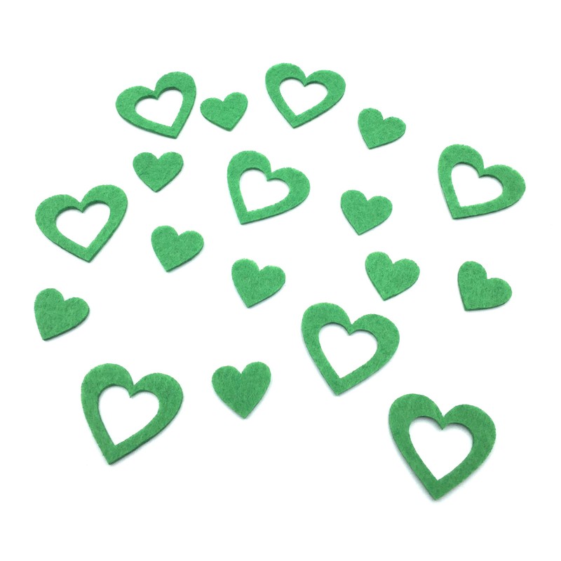 Heart Table Decoration (Two Sizes) Made of Felt - for Wedding, Anniversary, Valentine's Day and Crafts (Green)