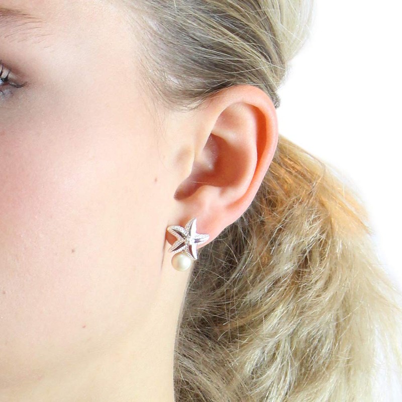 Heartbreaker Sealife LD SL 21 PW White Synthetic Pearl Sterling Silver 925 Stud Earrings