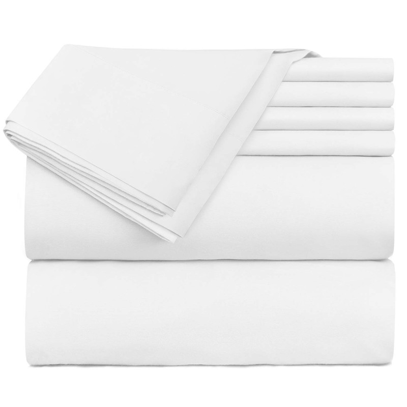- SPLIT KING SIZE: Includes 2 extra deep pocket fitted sheet, 1 flat sheet and 4 pillow cases. Deep pocket fitted sheet measures 80 inches x 39 inches and fits mattresses 18-24 inches deep. Flat sheet measures 102 inches x 108 inches. Pillow cases measure 20 inches x 40 inches.