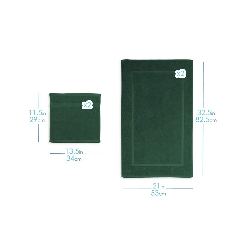 Hearth & Harbor 985 & 600 GSM Towel Collection – 100% Cotton Luxury Set of 2 Bath Mat Towel 985 GSM & 2 Wash Cloths 600 GSM – Ultra Soft & Absorbent Bath Mat Towel & Washcloths for Bathroom - Green