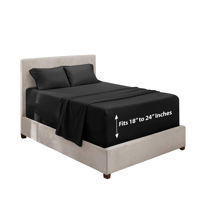 Hearth & Harbor Extra Deep Pocket Full Size Sheets Set - 4 Piece Hotel Luxury Bed Sheets Set Fits Up to 24" Mattress - Ultra Soft Luxury Bed Sheet Set - Soft & Breathable, Black