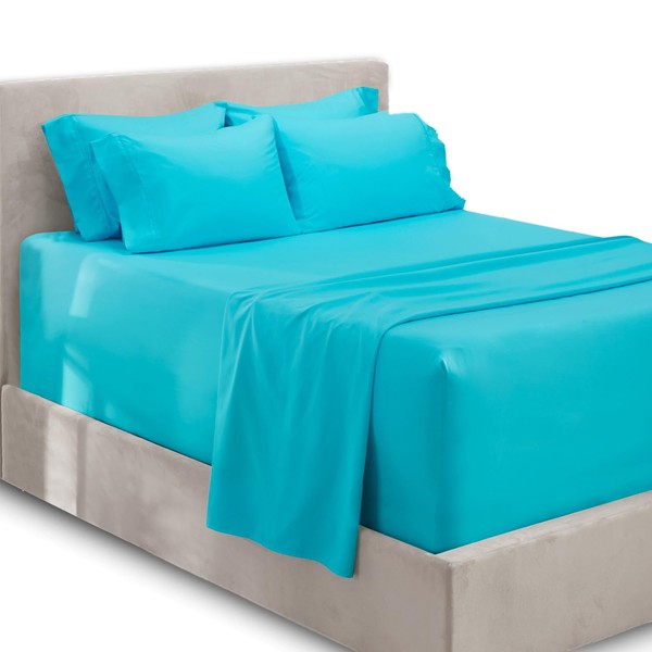 Hearth & Harbor Extra Deep Pocket Sheets - Fits Mattress 18-24 Inches Deep - Extra Deep Pocket Full Size Sets - 6 Piece Full Size - Full - Beach Blue Sheets