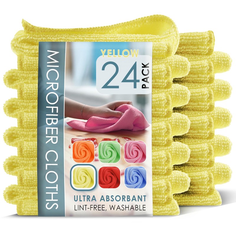 Hearth & Harbor Microfiber Cleaning Cloth, Microfiber Towels for Cars 24 Pack Washcloths, Yellow Cleaning Rags, Reusable Microfiber Towel, Microfiber Cloth Rags for Cleaning, Lint Free Cloth