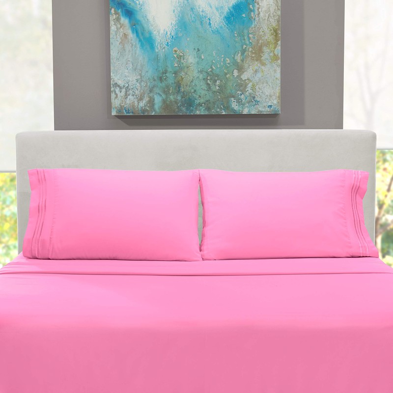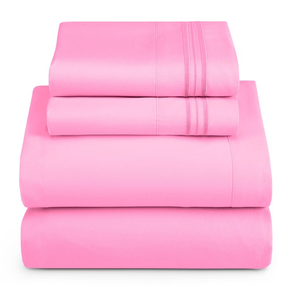 Hearth & Harbor Queen Size Sheets - 4 Piece Bed Sheet Set, Hotel Luxury Double Brushed Bed Sheets - Extra Soft Bedding Sheets & Pillowcases, Queen, Light Pink