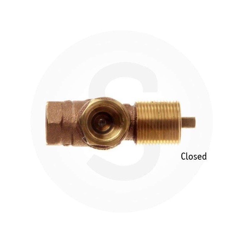 - Angled gas shut off valve kit with standard quarter-turn ball valve