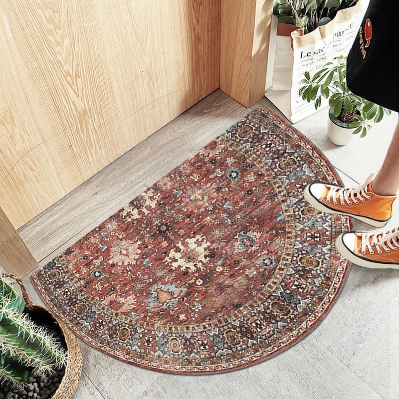 • Stylish Half Moon Shape: The half-moon shape of the rug adds a unique design elements to your home. Its versatile size (20x32 inches) fits perfectly in a variety of spaces, from fireplaces to bathroom doors, giving your home a stylish and welcoming touch.