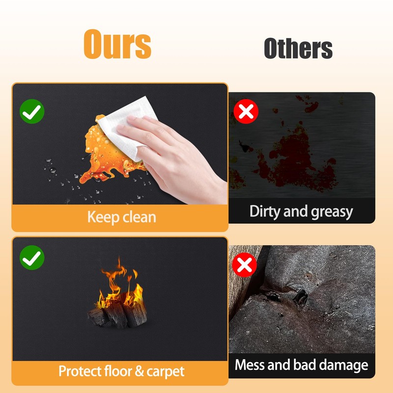 - 【Wide Application】Our fiberglass fire resistant fireplace mat can protect floors, carpets, decks, garage floors, patios and other surfaces from spills such as fireplaces, outdoor grills, stoves, chimineas or damage caused by dripping water around them.