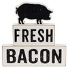 Hearthside Fresh Bacon w/ Pig Set of 3 Wood Blocks Shelf Sitter Distressed Farmhouse Rustic Country