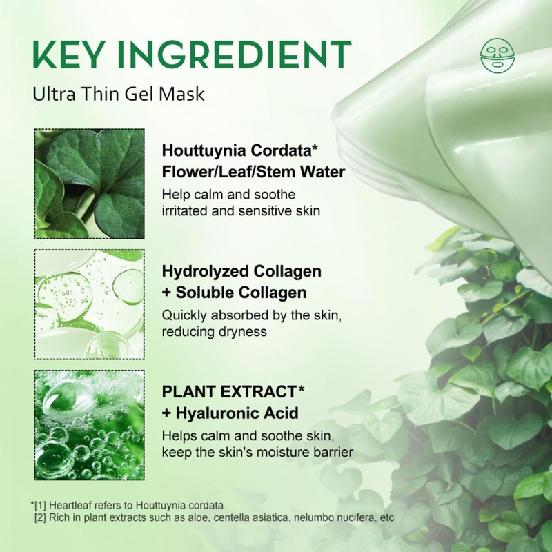 - 【SOOTHING & HYDRATION FOR SENSITIVE SKIN】: Heartleaf 70 Soothing Collagen Mask combines Heartleaf and hyaluronic acid to calm redness and lock in moisture for 72 hours. Perfect for sensitive skin, this Korean Glass Skin Mask strengthen your skin barrier without irritation that delivering a cooling sensation that instantly reduces puffiness. Ideal for post-sun exposure or daily stress relief, it’s your go-to rescue for a healthy, glowing complexion.