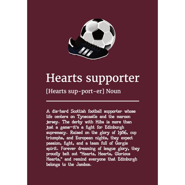 Hearts Football Supporter Definition Print, Edinburgh Football Art, Maroon Fan Wall Decor. Size A4