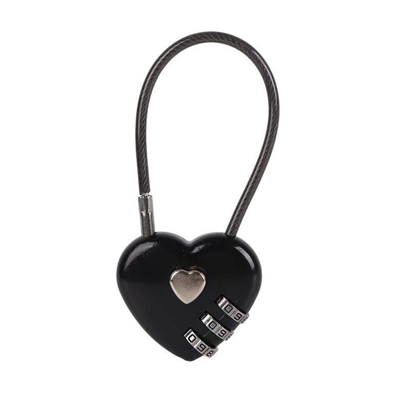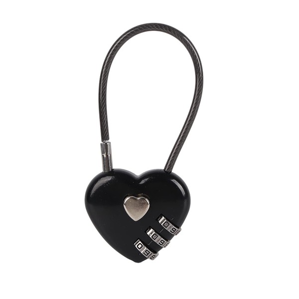 Heartshaped 3-Digit Code Combination Lock for Luggage, Bag Lock, Password, Security Padlock, Compact Size, Easy to Use (Black)