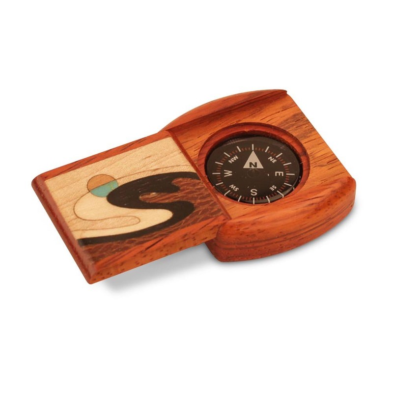 - Handcrafted of reddish-brown padauk wood, this little box possesses a sliding lid to reveal a protected glass compass.