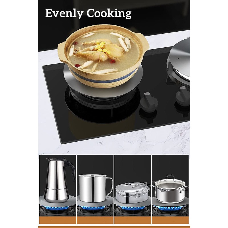 - Multi Use: Heat diffuser plate can be use for most of cookware, such as stainless steel, aluminium, glass cookware and ceramics pot or pan, for use on gas stove, glass cooktop and induction cooker.etc. Also works well for coffee stovetop, butter heater, tea pot, milk cookware, and other small cooking utensils.