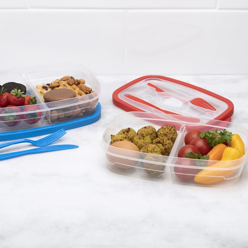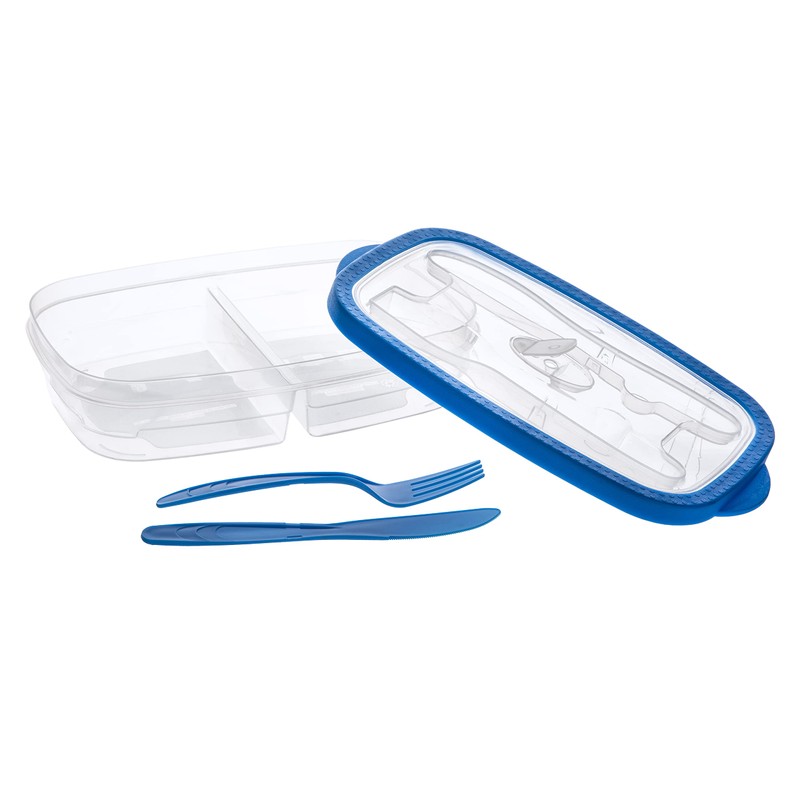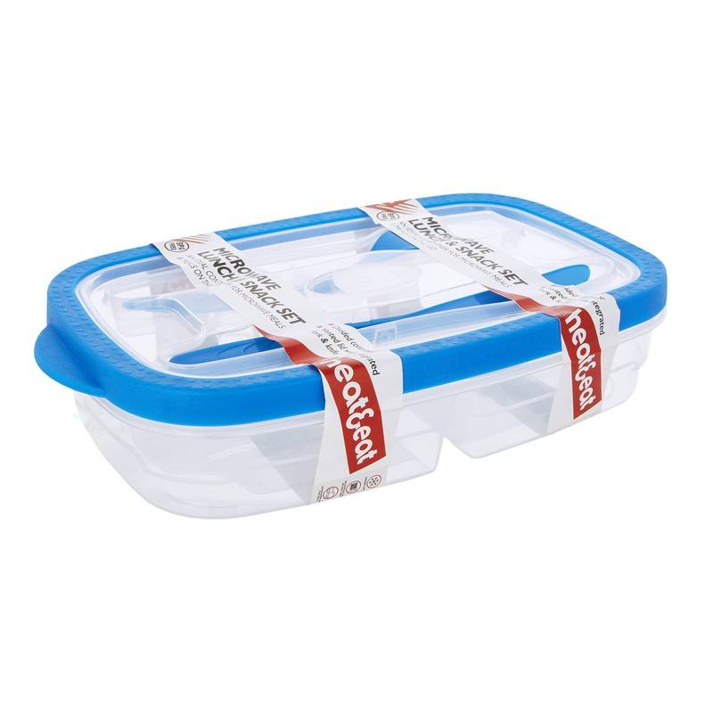 Heat & Eat Lunch Box, Clear, with Red/Blue Trim