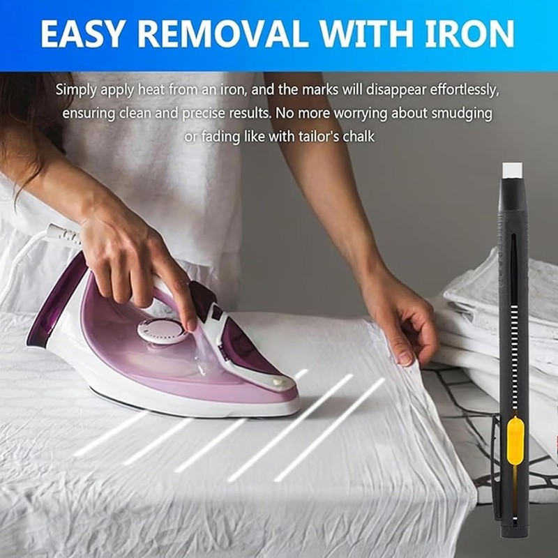 - Suitable for a variety of fabrics: Heat-erasable ink can be erased instantly by simply ironing the fabric. Suitable for cotton, polyester, denim and most standard sewing fabrics