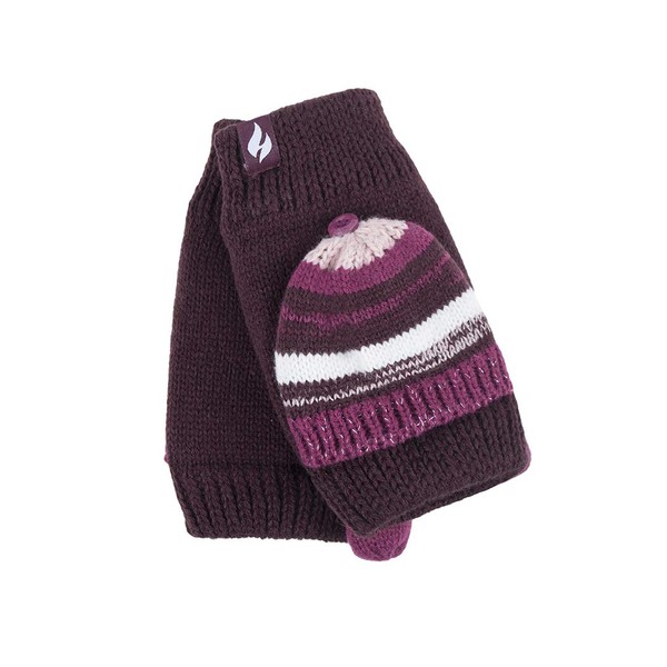 HEAT HOLDERS Ladies Converter Heatweaver Thermal Winter Warm Mitt Mitten Gloves (Burgundy/Mulberry - Bronte)