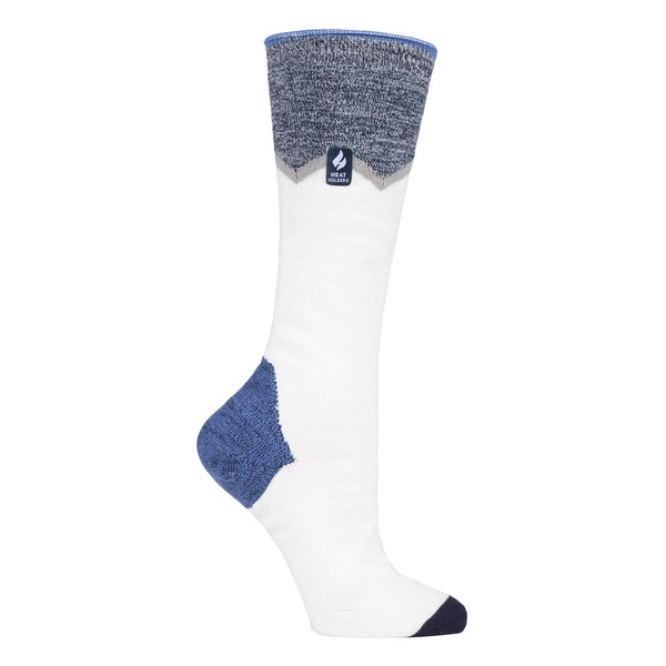HEAT HOLDERS Lite Women's Knee-Length Warm Colourful Pattern Extra Ultra Thin Ski Socks, Creme Zig Zag