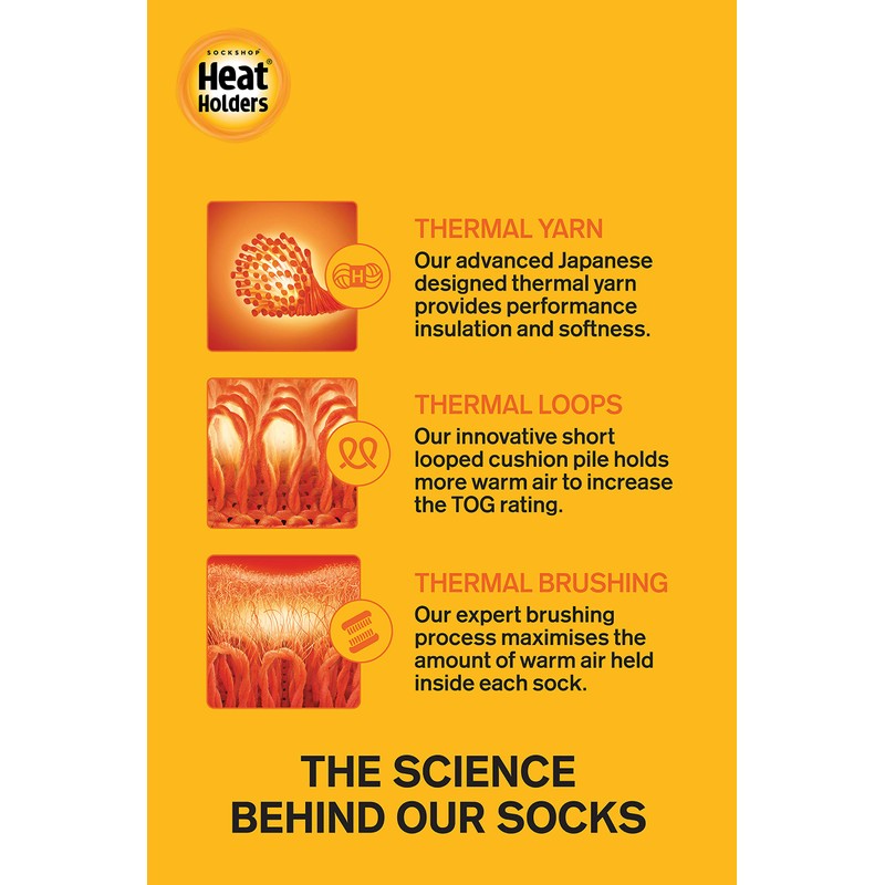 Heat Holders Brushes. Our expert brushing process maximises the amount of warm air inside each sock comfort for incredible total warmth and kept all day long.
