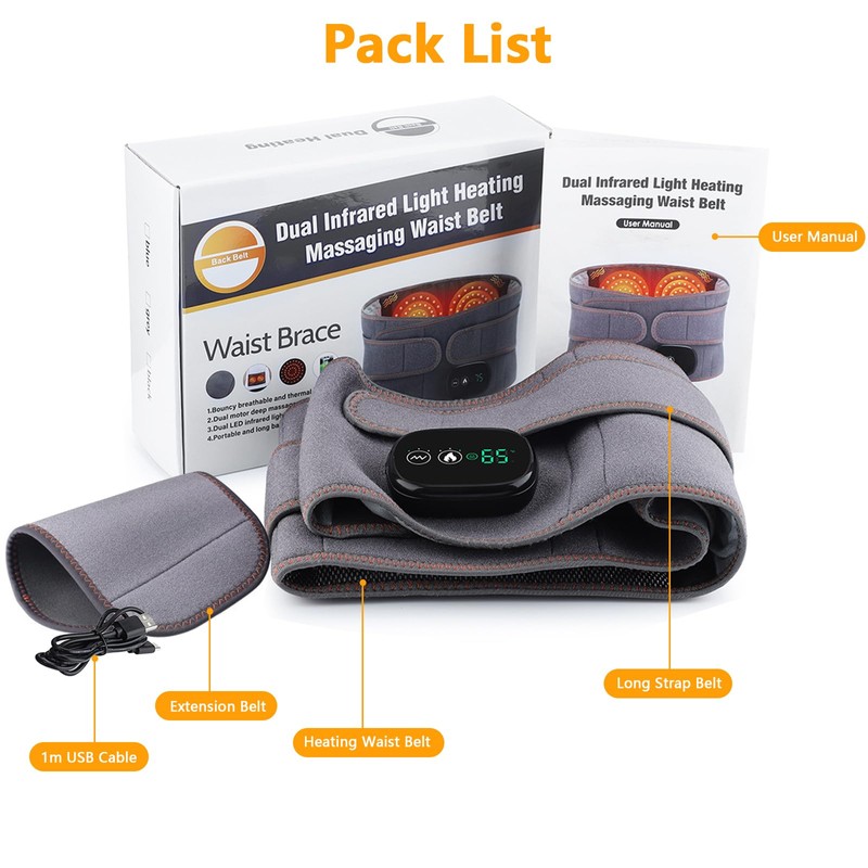 - đ„ă3 Temperature/Massage Modes OptionsăThis cordless cordless heat belt can provide 3 heat settings, low, medium and high, to meet your different temperature needs. This cordless heat belt has 3 massage modes, which allows you to have a set for yourself to achieve the ultimate comfort. The heating and massage functions can be used simultaneously or individually.