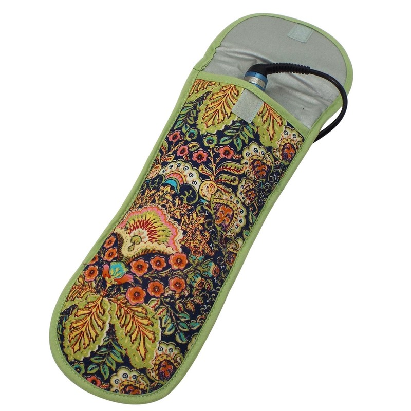 Heat-resistant Flat Iron Cover- Navy with Floral Pattern and Green Trim