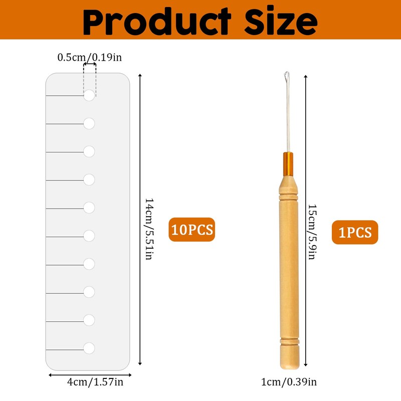- 【Size Description】The k tips hair extensions tools measures 5.5 *1.6 inches/ 14*4cm and includes 10 holes. The crochet hook is 5.9 *0.4 inches/14.9*0.98cm,include 10 heat shields, 1 crochet hook.