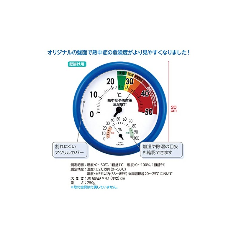 Heat Stroke Prevention Countermeasure Analog Thermo-Hygrometer YN-902 Wall Mounted Wall Mount Large Diameter 11.8 inches (30 cm) Heatstroke Meter