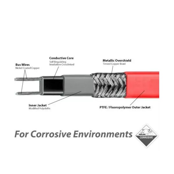 Heat Trace Products Per Foot 120V Self Regulating Heating Cable Fluropolymer PTFE Chemical 3 Watt/FT