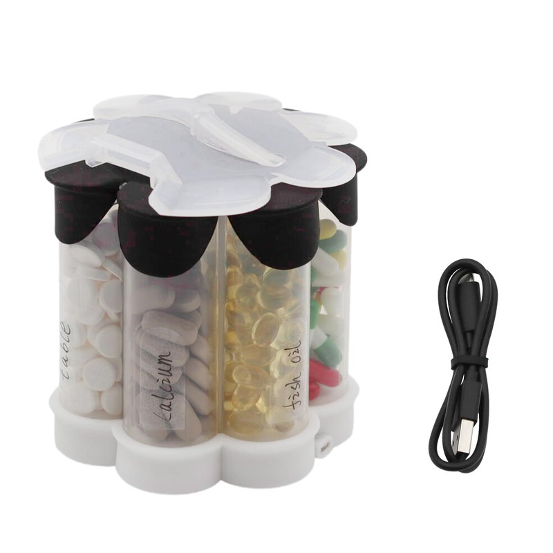 - [EASY-TO-OPEN&FILL]: Our pill box organizer has an ergonomic handle and a rotating cover, so that you can open one compartment and seal other compartments safely. No need to tangle with multiple lids or compartments-just unscrew the lids and pour out the pills easily. In addition, the silicone base can be easily disassembled and filled conveniently and quickly.