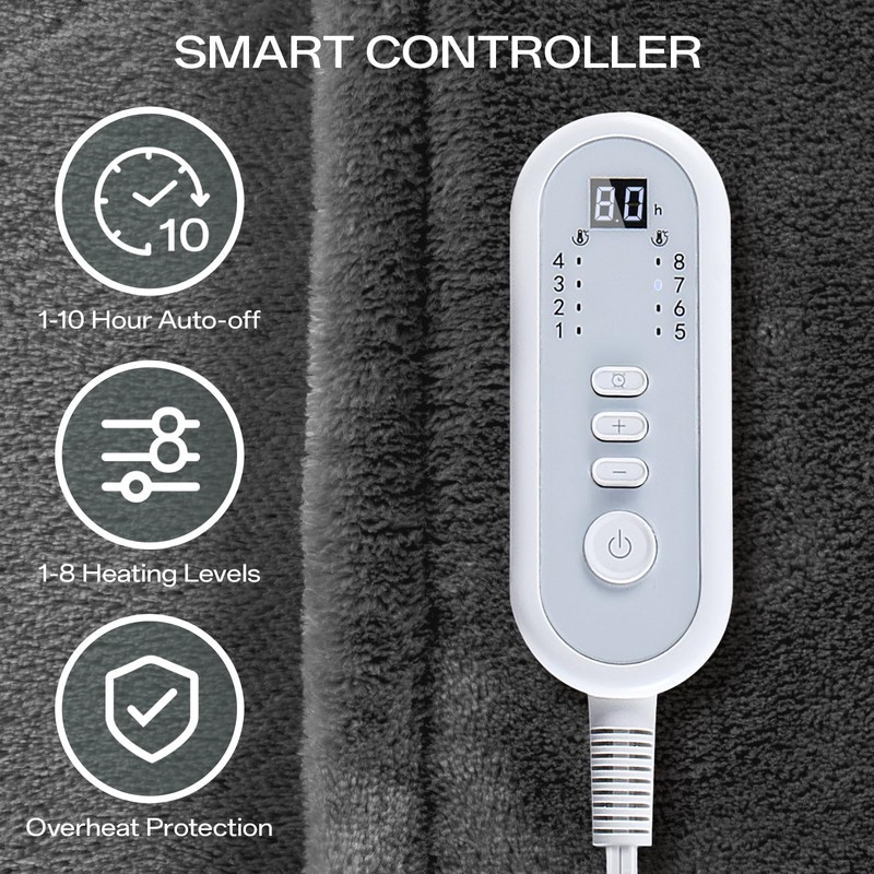 • Digital Display Controller: The electric heating blanket features 8 temperature settings (86-122°F), supports 1-10 hour timers, and has an automatic shut-off function. The heated blanket is controlled via the included digital display controller, making it easy to use and allowing you to clearly see the temperature setting and timer duration.