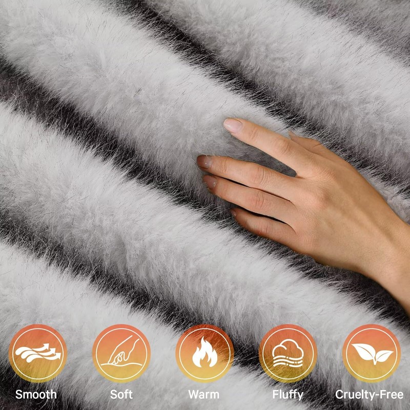 - Home Decor: This heated throw blanket more than just a heating blanket it’s a chic accent for your couch or bed. The fluffy blanket can be spread on a sofa, bed, office or lap use even used as a decorative piece on your armchair, it can easily enhance the ambiance of any room, adding elegance and sophistication. This blanket is crafted from silky smooth fibers and dyed yarns that look like the real thing, and feel as good as they look. Adds a cozy, luxurious vibe to any room.