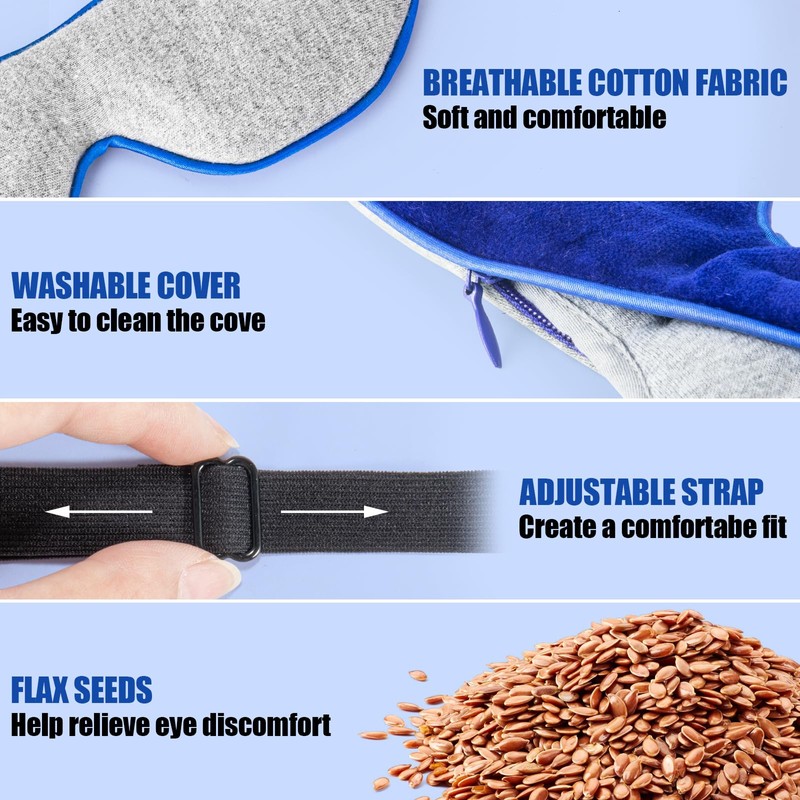 - Washable Cover & Gentle Comfort: Our washable eye cover offers cleanliness and infection prevention through its detachable design, ensuring a pristine experience. The heated eye cover provides complete coverage over the entire eye area. Crafted from soft cotton fabric and generously filled with natural flaxseed, it offers a delightful touch against your delicate eye skin. (Note: Smooth the flaxseed by hand before use for optimal performance due to gravity's effect.)