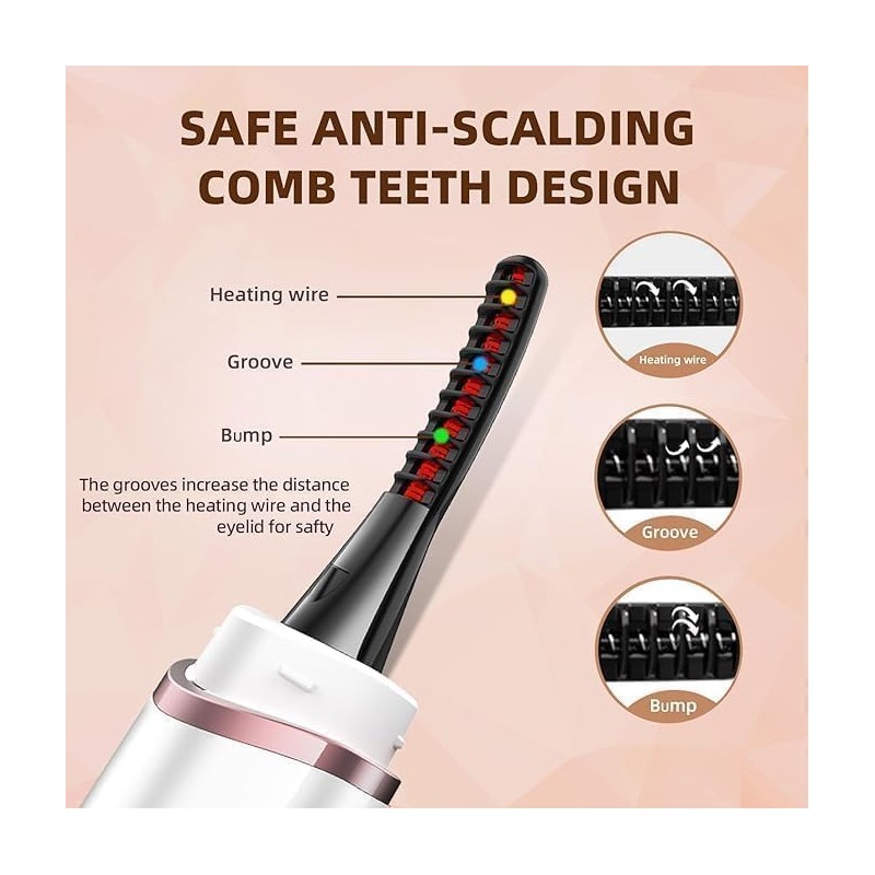 - ♪ ❤Safe And No Harm --- This electric eyelash curler is easy to operate. The 15° Arc brush head fits your lashes better, does not damage or pull lashes when brushing. The thermal insulating protection slots can avoid heat contacting the eyelid and hurting the skin. CXY114