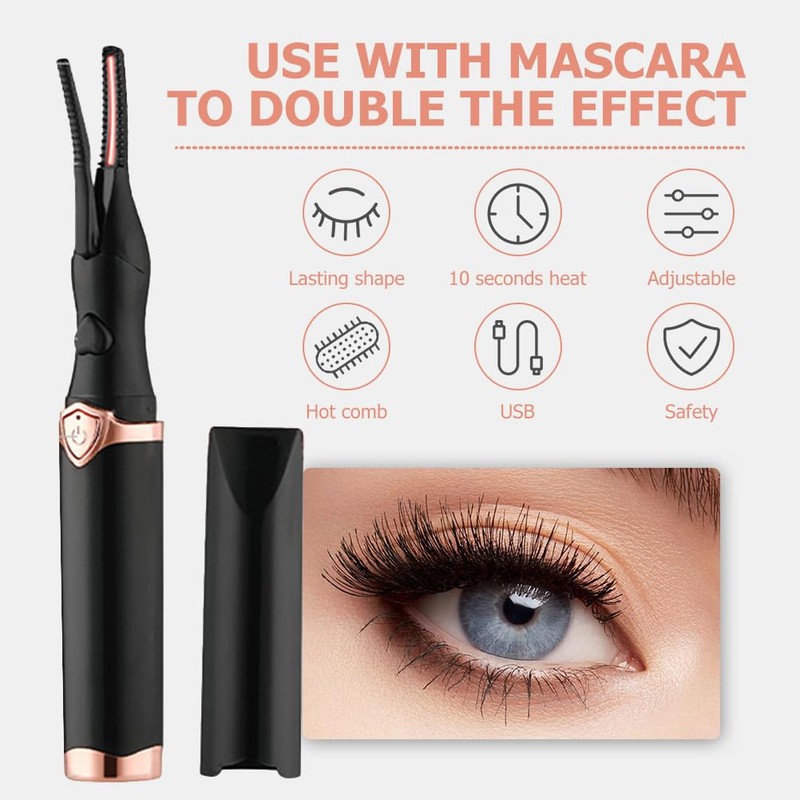 - 【Charging and Portable】Our heated eyelash curler adopts a USB interface and can be charged quickly. Plus, this eyelash curler is designed to be compact and stylish, making it easy to fit into your handbag, makeup case, or travel bag.
