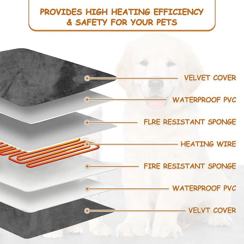 Heated Pet Bed, 7 Adjustable Temperature Pet Heating Pad Indoor With Timer, Pet Heating Pad for Cats Dogs, Electric Dog Cat Heating Pad With Washable Cover