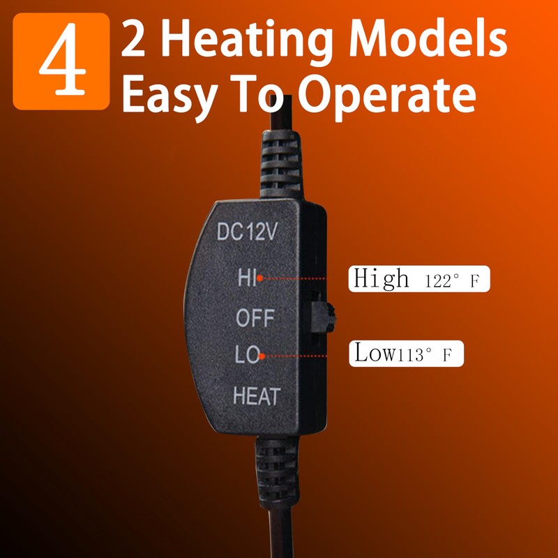 - 2 Heat Levels Are Available:Fast heat-up, reach 113℉at low level and 122℉ at high level that you can choose and use.