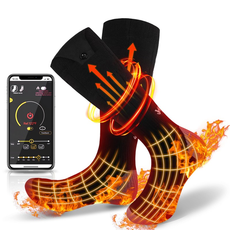 - 【More Ggears Available】According to the weather, you can set the socks to low temperature (60-90 ° F), medium temperature (90-110 ° F), medium high temperature (110 ° C) and high temperature (130-150 ° F). With 4 temperature settings, you can choose the most comfortable temperature. This makes our electric socks ideal for keeping warm in winter.
