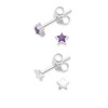 Heather Needham Silver 2 PAIRS Sterling Silver Star Earrings Purple Enamel Star Studs. and plain silver studs SIZE: Tiny - Teeny weeny 3mm. Gift Boxed. 5572PP/5148