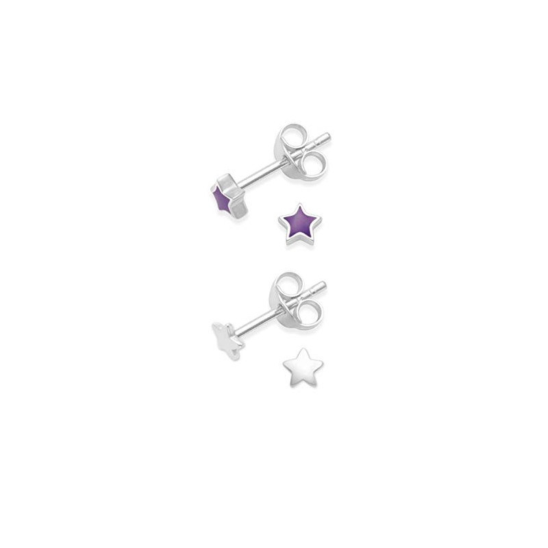 - Two Pairs in One Set : This set includes two pairs of sterling silver star earrings - purple enamel star studs and plain silver studs - offering yo
