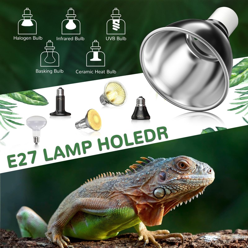 - [Suitable with E27 Base] This heat lamp for tortoises is engineered to firmly accommodate E27 UVA/UVB bulbs and 100W reptile heat bulbs, catering to the needs of various reptilian species such as lizards, turtles, snakes, arachnids, and even young birds. Bulb is not included and please prepare a heating bulb for your pet.