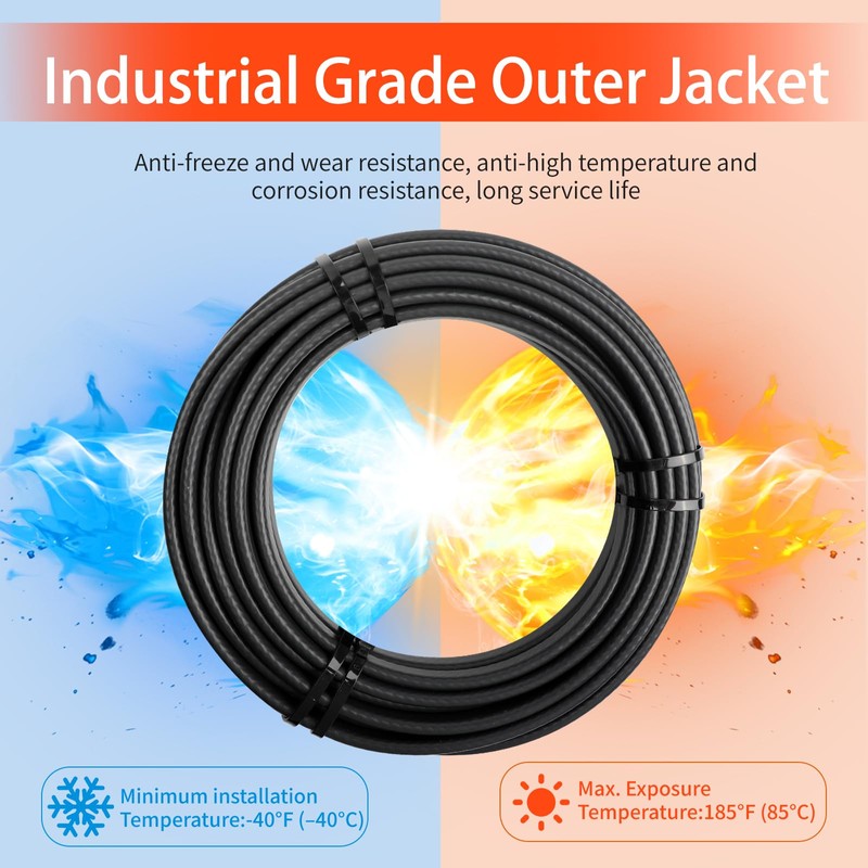 - Energy-Saving Performance: This heating cable automatically adjusts its heat output based on ambient temperature conditions. It increases heat output in cooler conditions and decreases output as the temperature rises, resulting in energy savings.