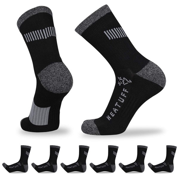 Heatuff - Calcetines deportivos para hombre, 6 unidades, para senderismo, talones y dedos reforzados, Negro 6, Fit US Men's Shoe Size 6-12 / Sock Size 10-13