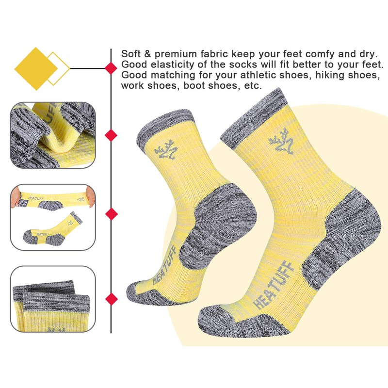 Heatuff Womens 6 Pack Hiking Crew Socks Performance Athletic Cushion Outdoor Trekking Sock