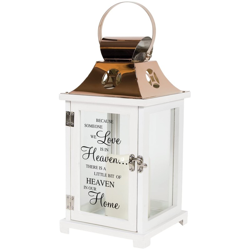 Carson's Light The Way Memorial Lanterns are made from quality composite wood and a stainless steel copper finish top. They feature a built-in automatic timer which runs for 6 hours on and 18 hours off(3-AAA batteries are NOT included) and are inscribed with sentimental quotes. DO NOT use fire burning candles in the lanterns. Suitable for hanging or free-standing use inside. Recommended as an accent in floral arrangements for many occassions!