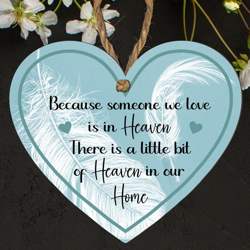 Celebrate and remember loved ones with this beautifully crafted heart-shaped memorial plaque. Inscribed with the touching message, "Because someone is in heaven, there is a little bit of heaven in our home," this plaque serves as a comforting reminder of everlasting bonds and the presence of loved ones who have passed away.