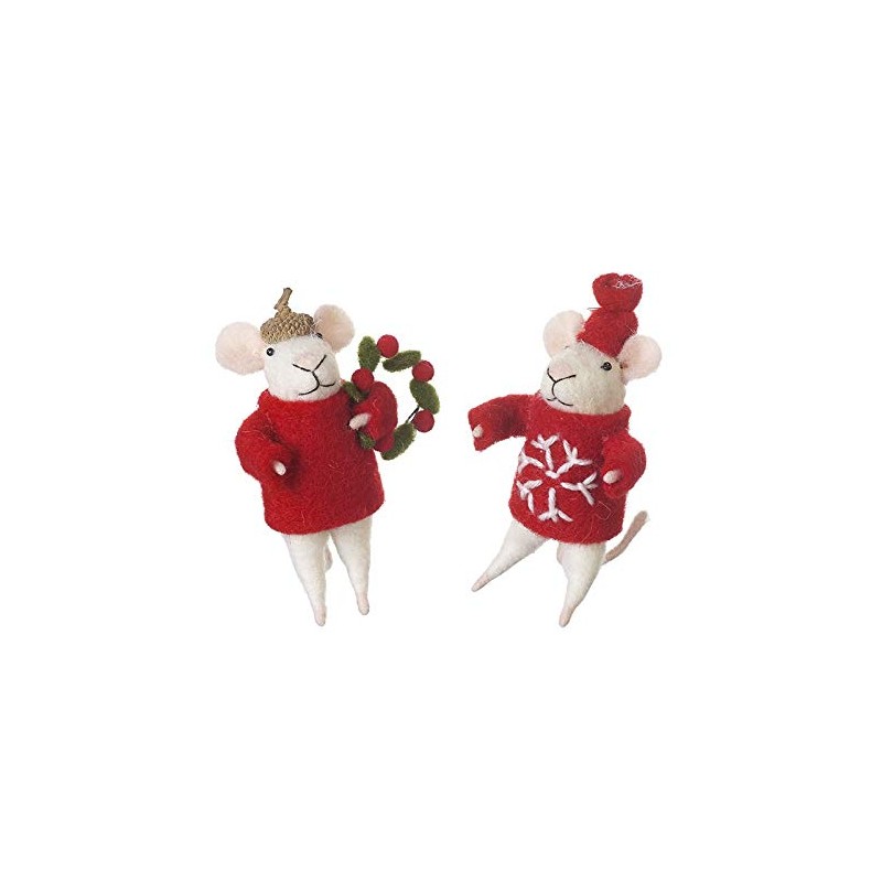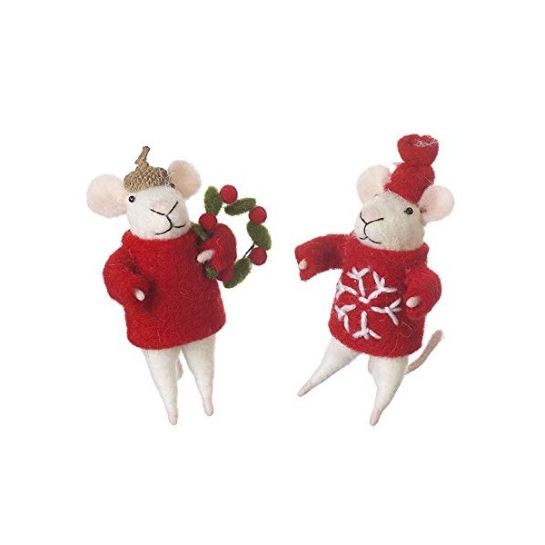 Heaven Sends Duo Of Standing Felt Mice Christmas Home Decorations