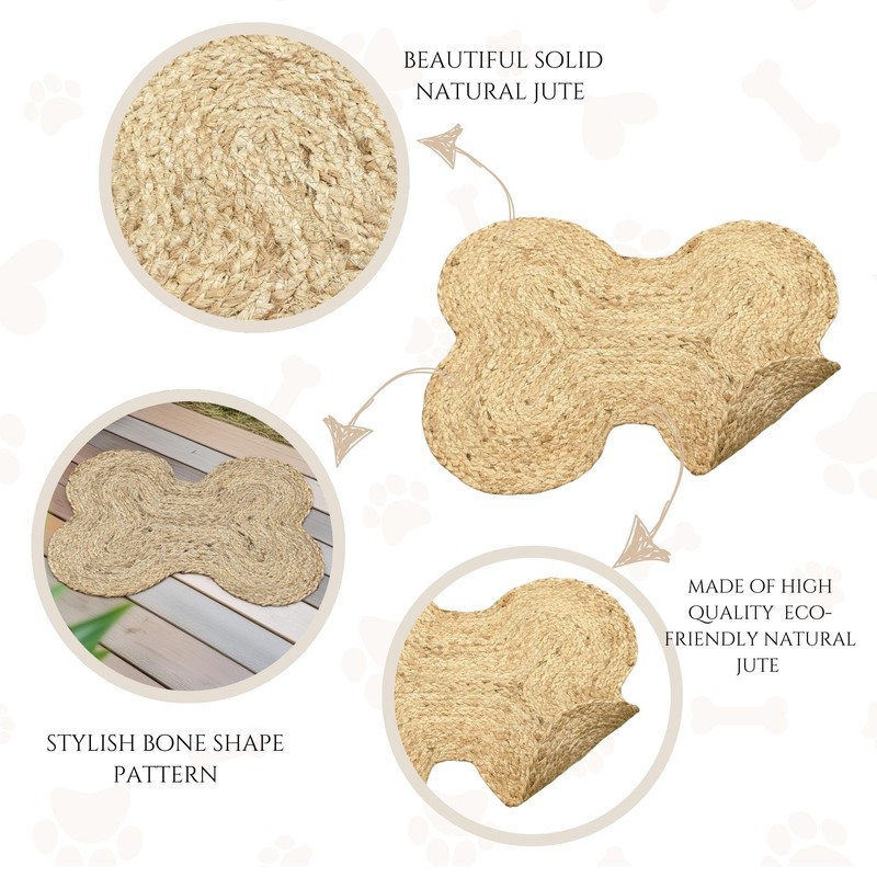 Heavenera 16.5X21 inches Pack of 1 Dog Feeding Mat Cat Pet Dining Mat Natural Jute Material Rug Small Mat for Pets (Classic Jute, 16.5"X21")