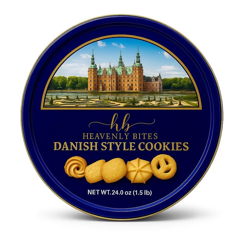 Heavenly Bites Danish Style Butter Cookies in Metal Tin 24 Oz
