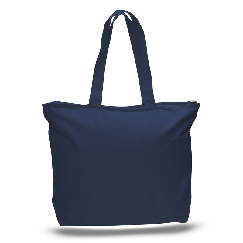 Heavy Canvas Large Tote Bag with Zippered Closure (Navy)